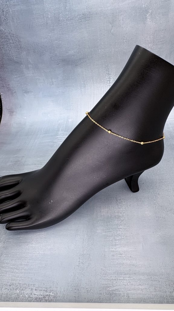 Gold plated stainless steel chain with 3mm beads.