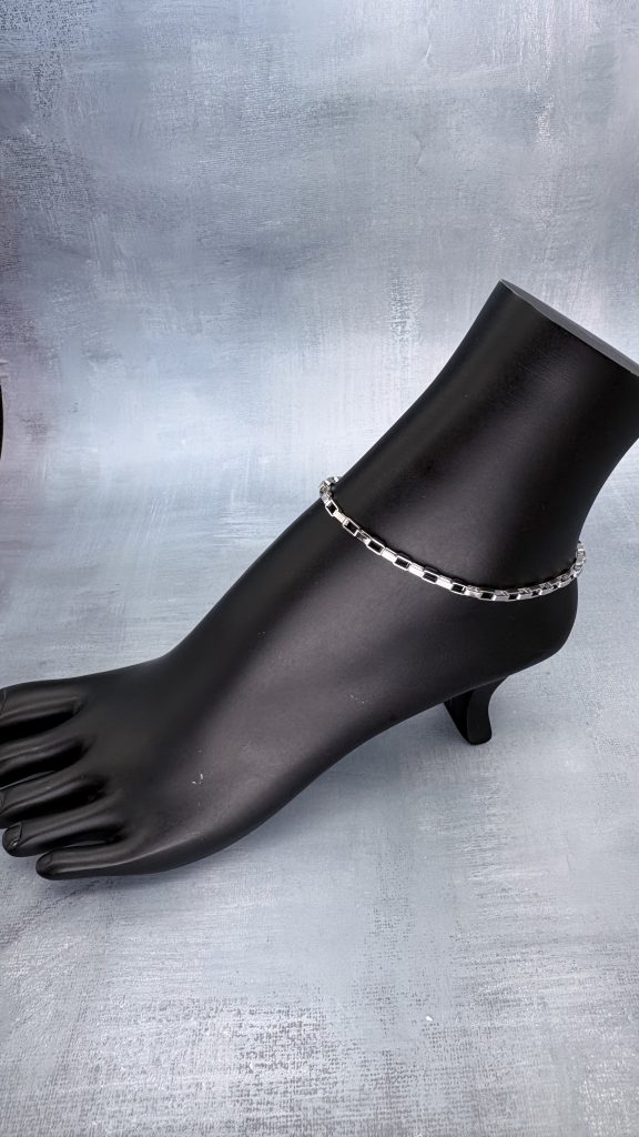 Stainless steel box link chain anklet in silver. Links are 2mm x 4mm